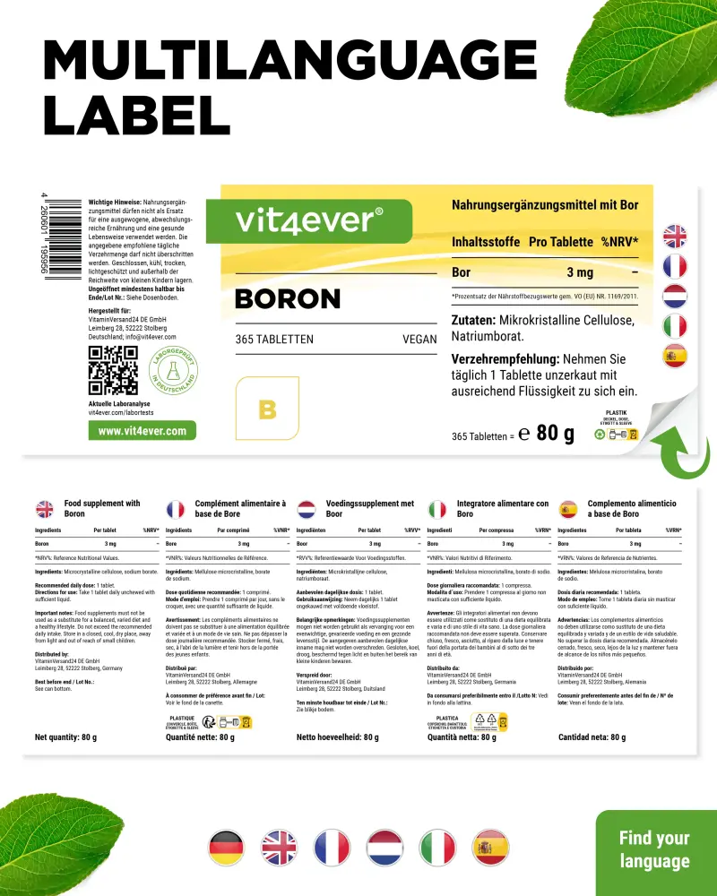 Microcrystalline cellulose (pressing aid), sodium borate.
