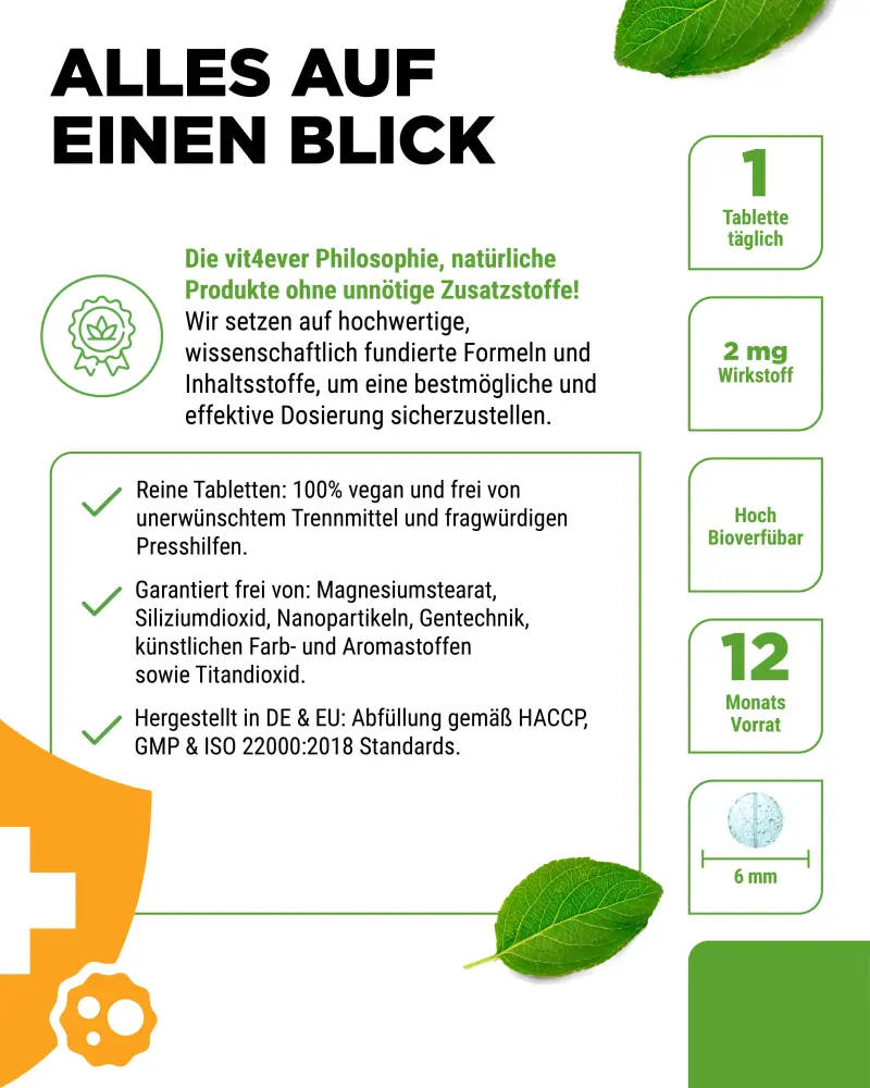 The very small amounts that our organism needs are usually absorbed through food, so that additional supplementation is comparatively rarely necessary.
