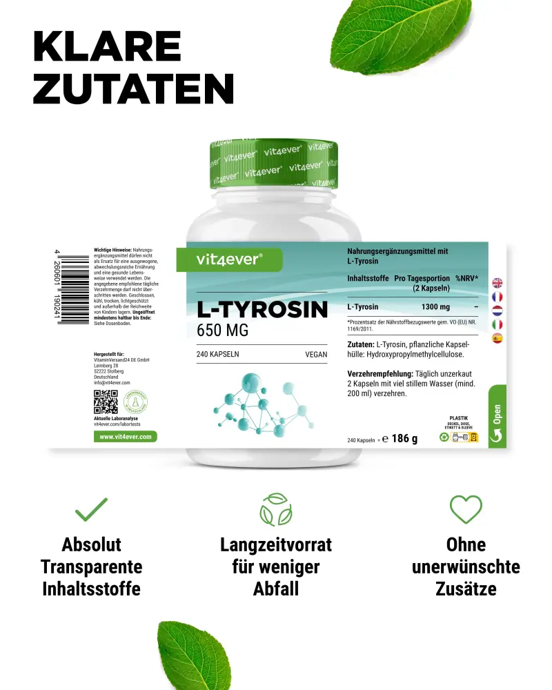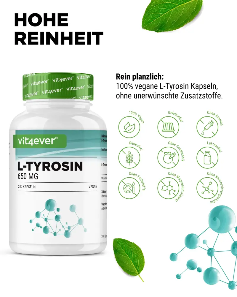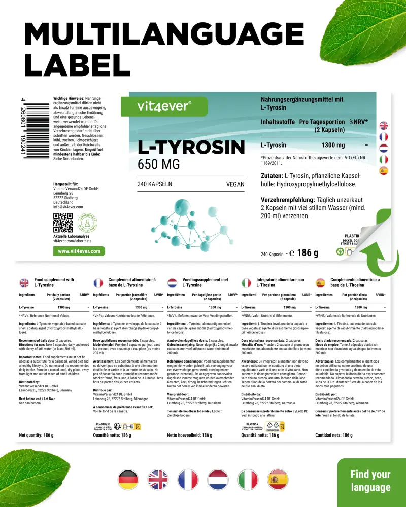 L-tyrosine, coating agent: hydroxypropyl methylcellulose (vegetable capsule shell).