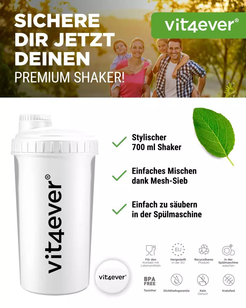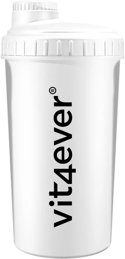 600 ml shaker in white with the inscription ‘vit4ever’.