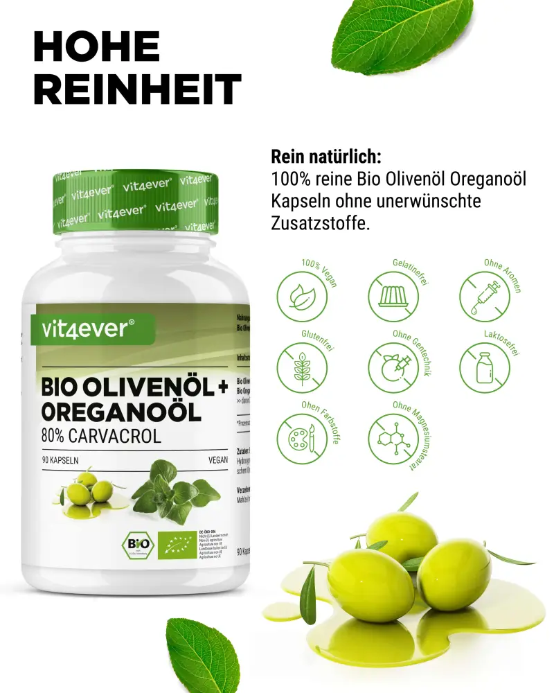 La combinación de aceite de oliva virgen extra ecológico y aceite de orégano ecológico te ofrece los beneficios de ambos aceites en una sola cápsula.