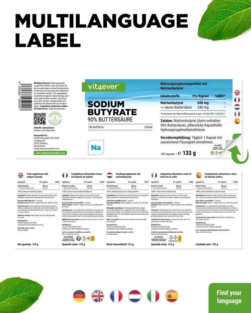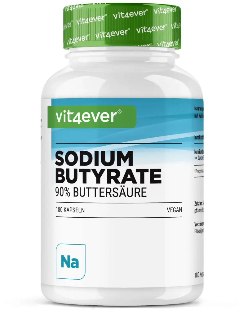 Le butyrate de sodium contient 90 % d’acide butyrique pur pour soutenir ton microbiome.