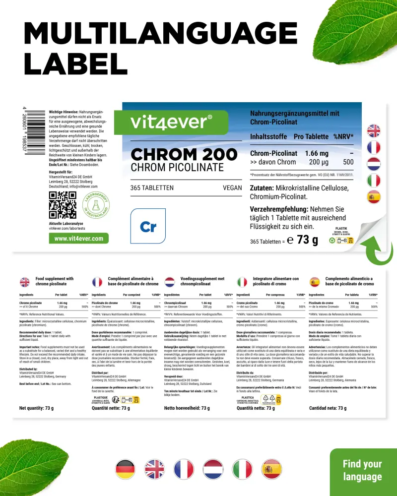 Un apport insuffisant ne semble guère possible d’après les connaissances scientifiques, mais il peut être nécessaire dans certains cas de prendre un supplément de chrome, en particulier si les habitudes alimentaires individuelles font que l’apport de chrome par l’alimentation est insuffisant.