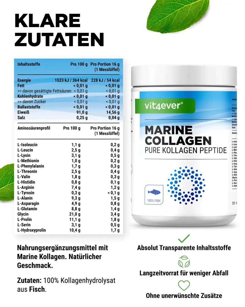 Le collagène de poisson possède un profil complet d’acides aminés et se dissout rapidement dans l’eau, les jus ou les shakes.