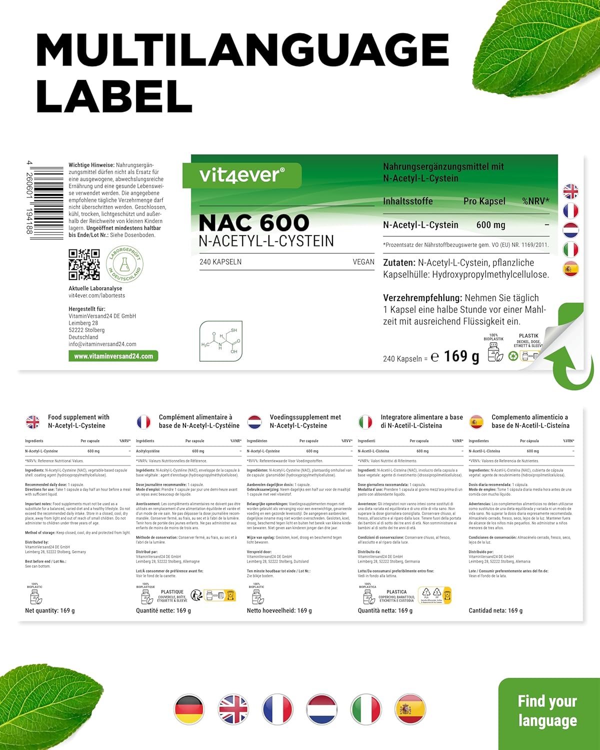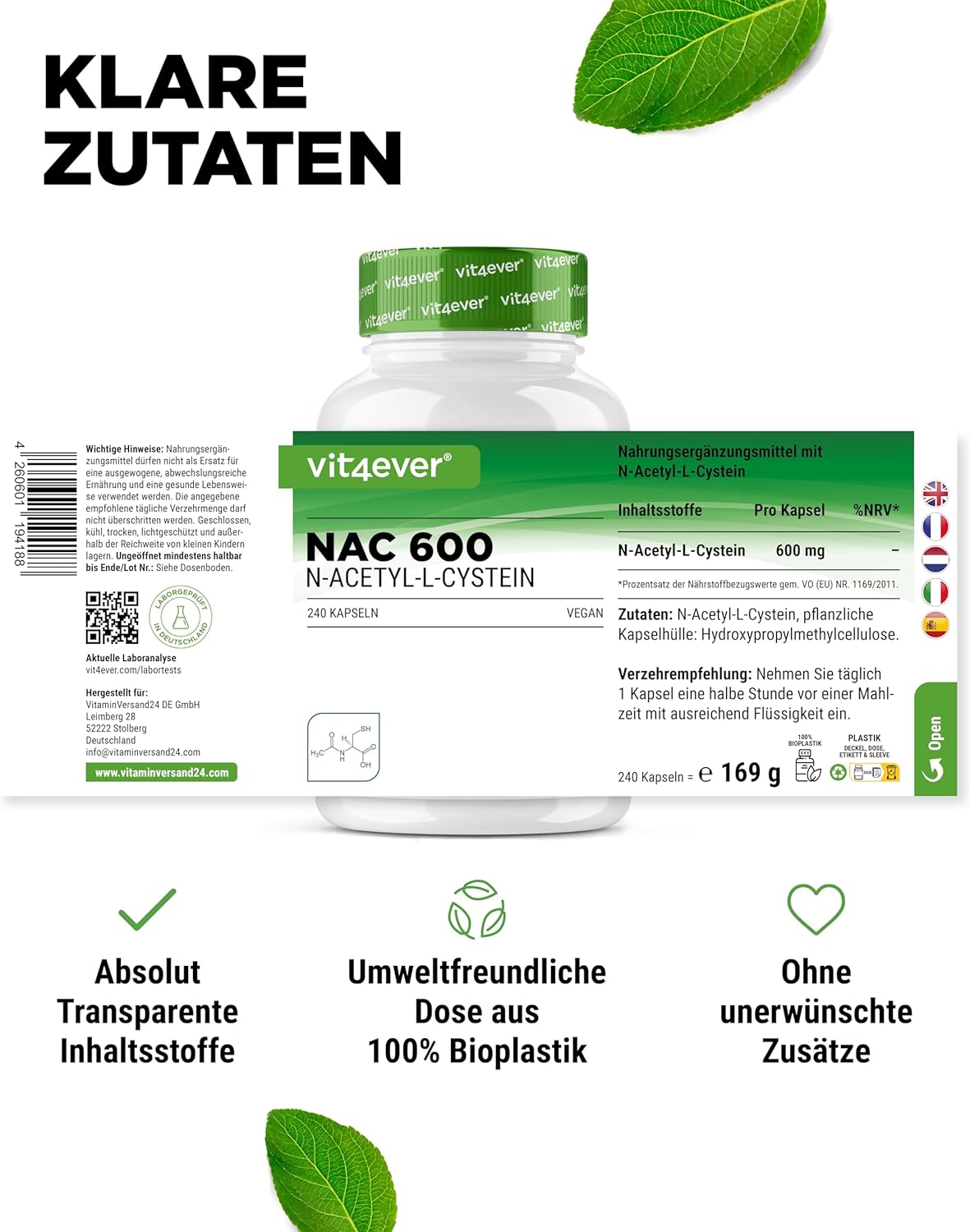 La NAC est plus stable que la L-cystéine normale prolonge l’action de l’acide aminé dans la production de glutathion, qui est impliqué dans de nombreux processus importants dans le corps et qui a également un effet antioxydant.