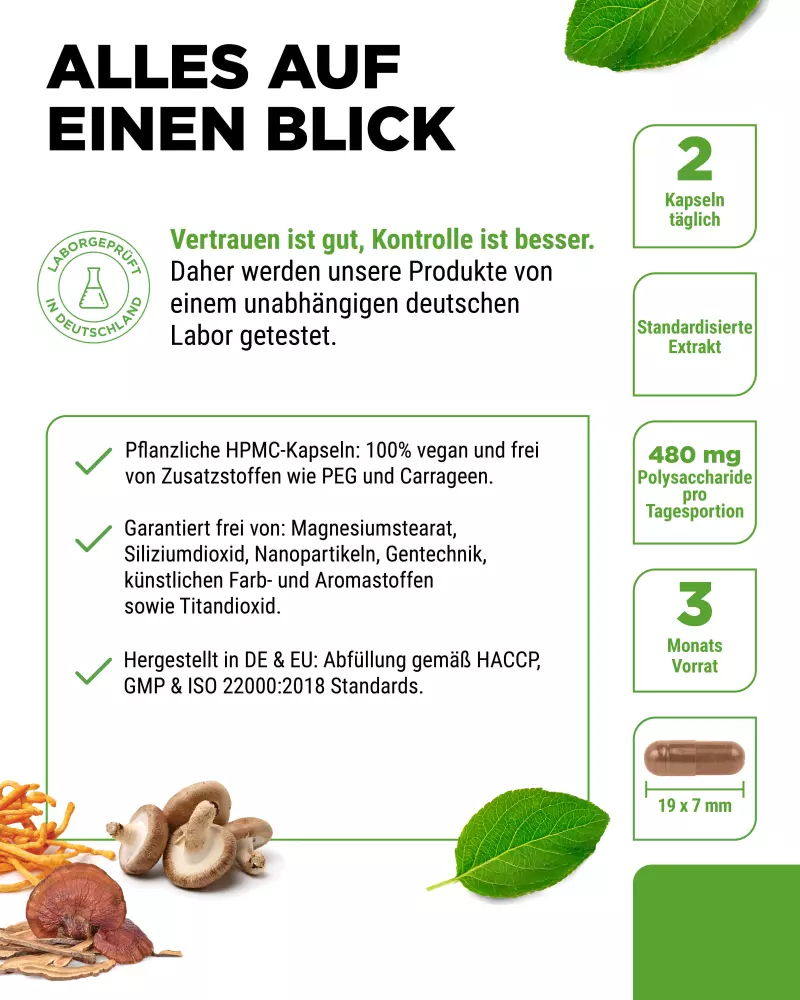 Contiene 240 mg di polisaccaridi bioattivi per capsula.