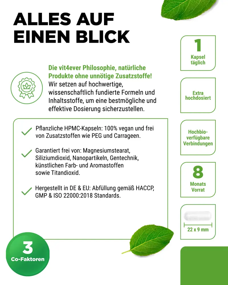 Calcio-D-pantotenato, involucro della capsula vegetale: idrossipropilmetilcellulosa, L-colina bitartrato, niacinamide, inositolo esaniacinato, riboflavina-5-fosfato, tiamina HCl, piridossal-5-fosfato, acido para-aminobenzoico, glucosamina 5-MTHF (Quatrefolic®), metilcobalamina, adenosilcobalamina, idrossocobalamina, D-biotina.
