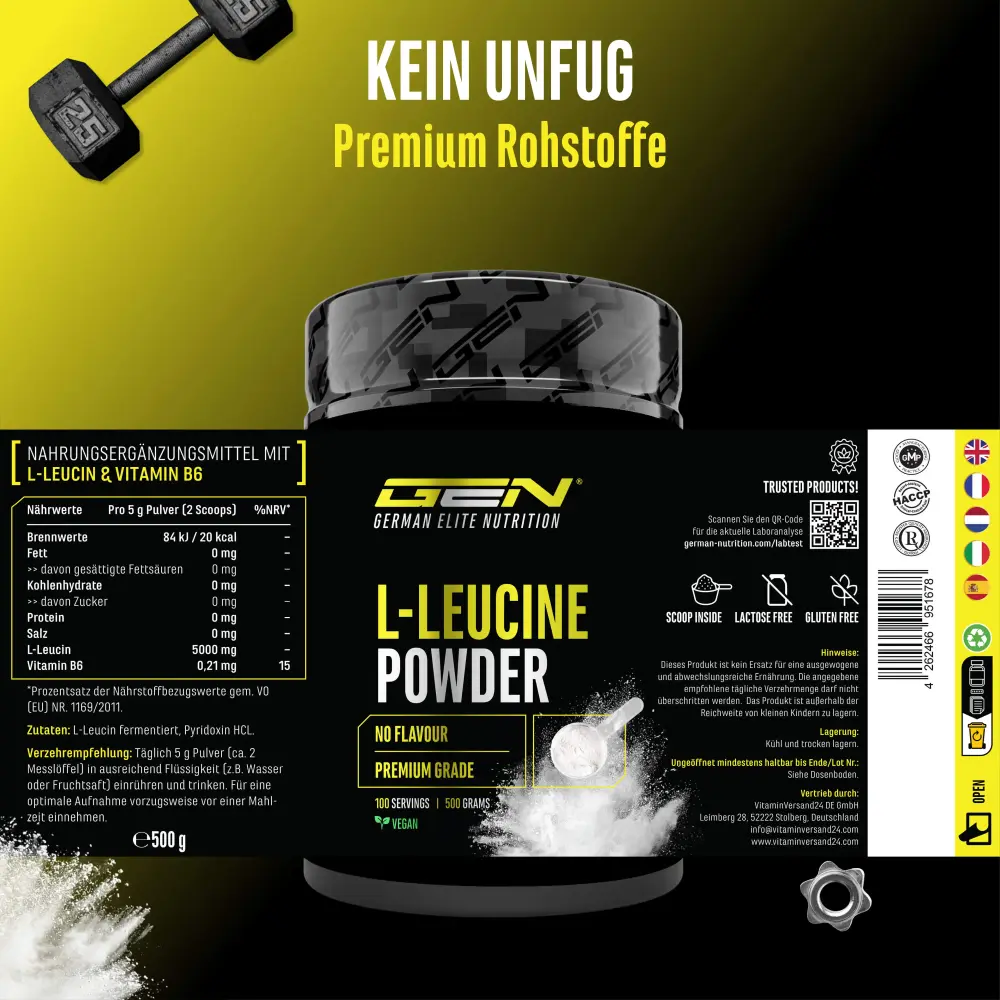 Zuivere, gefermenteerde leucine is een essentieel aminozuur dat een centrale rol speelt bij de spieropbouw.