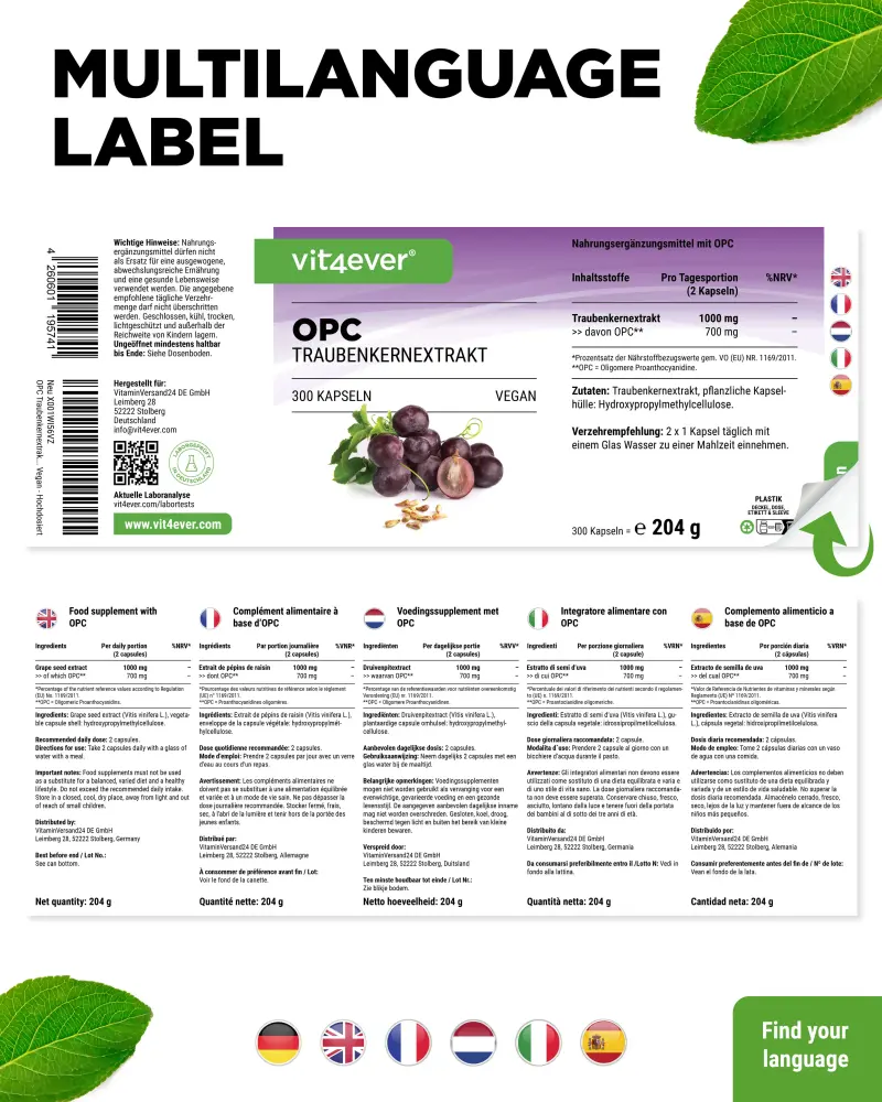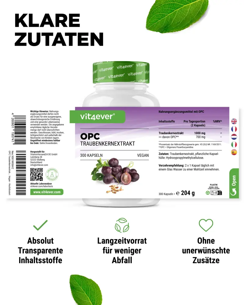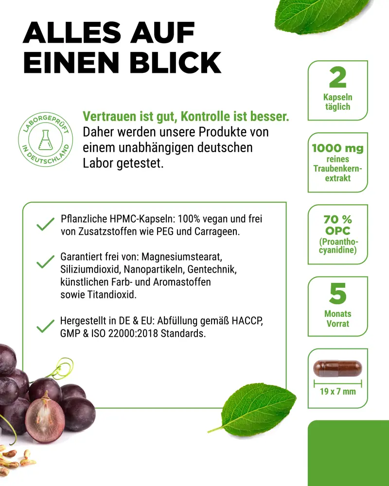 → Volgens HPLC-methode: 350 mg OPC (70% oligomere proanthocyanidinen)