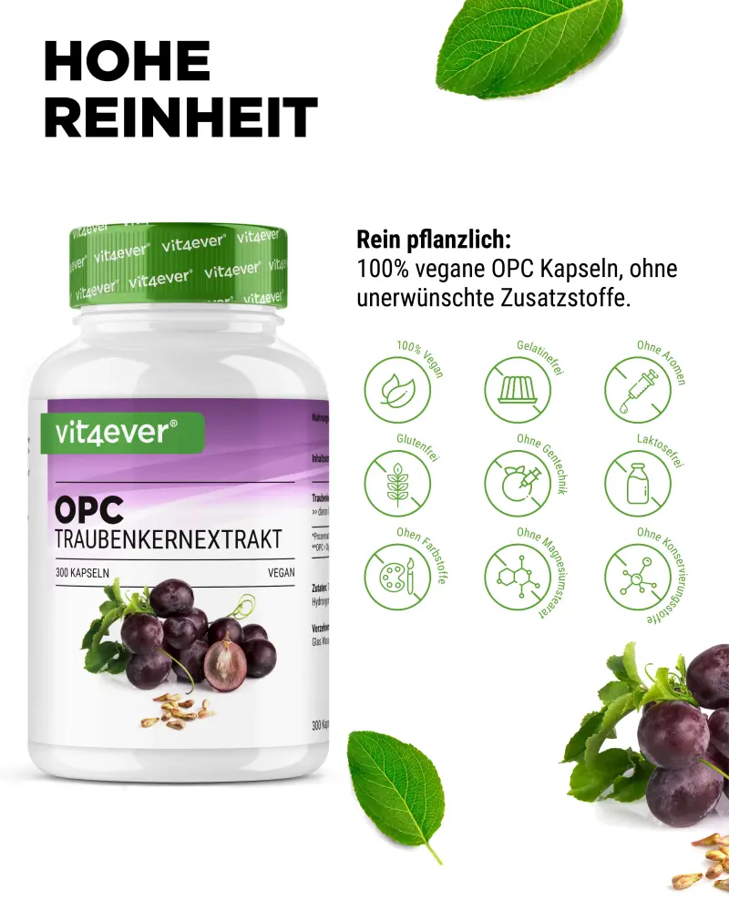 Oligomere proanthocyanidinen (OPC’s) komen voor in verschillende planten, maar worden voornamelijk gewonnen uit de zaden van rode en blauwe druiven.