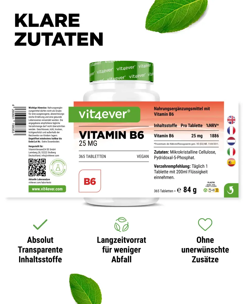 → Vitamine B6 is een in water oplosbare vitamine en een belangrijke reactiepartner in veel stofwisselingsprocessen.