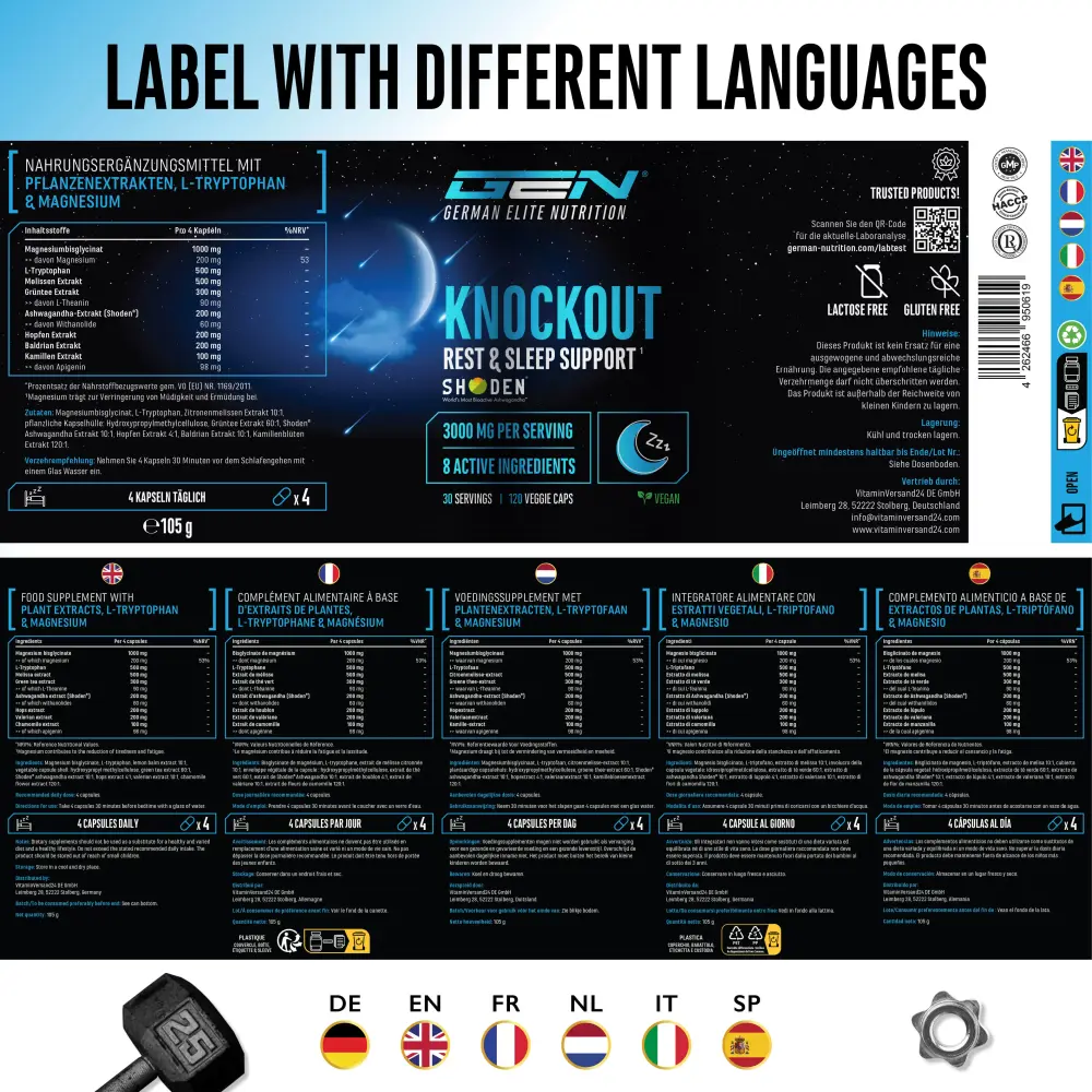 GEN Knockout bietet mit 8 aktiven und sinnvoll kombinierten Inhaltsstoffen einen gezielten Support für Deine nächtliche Erholung.