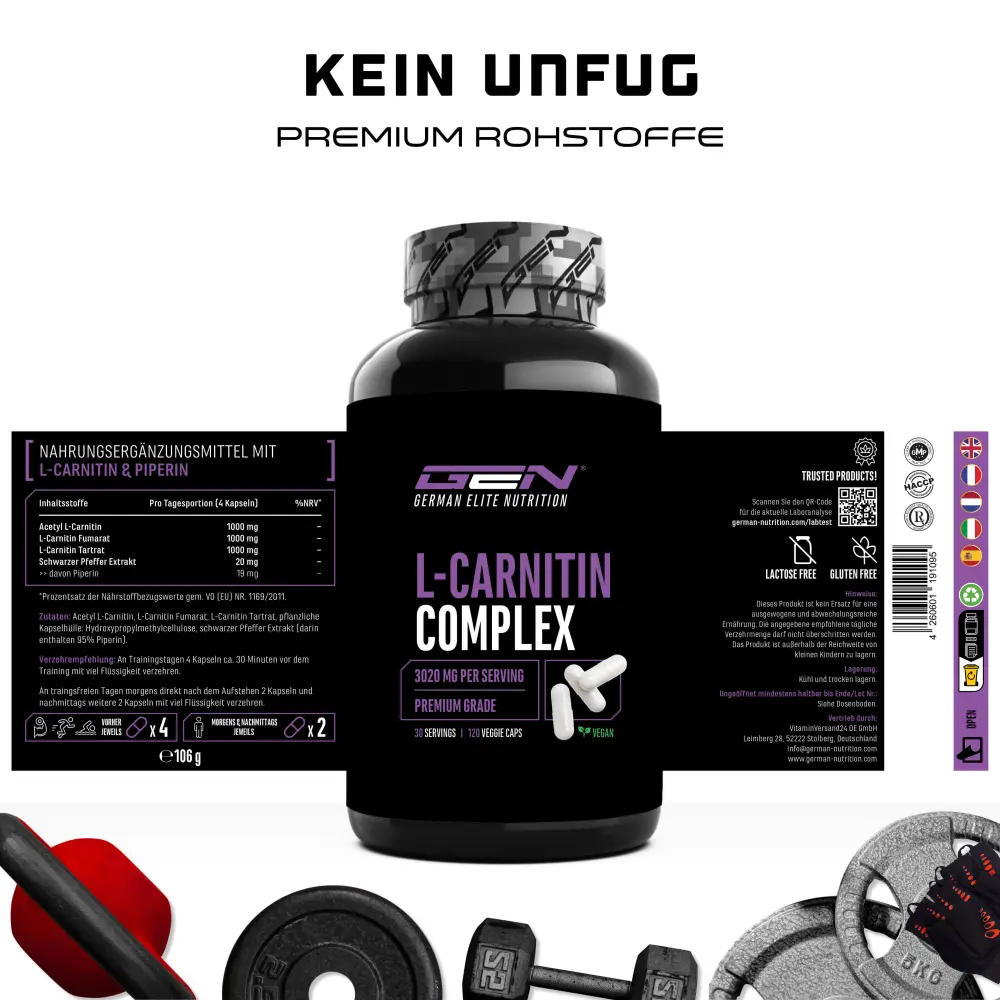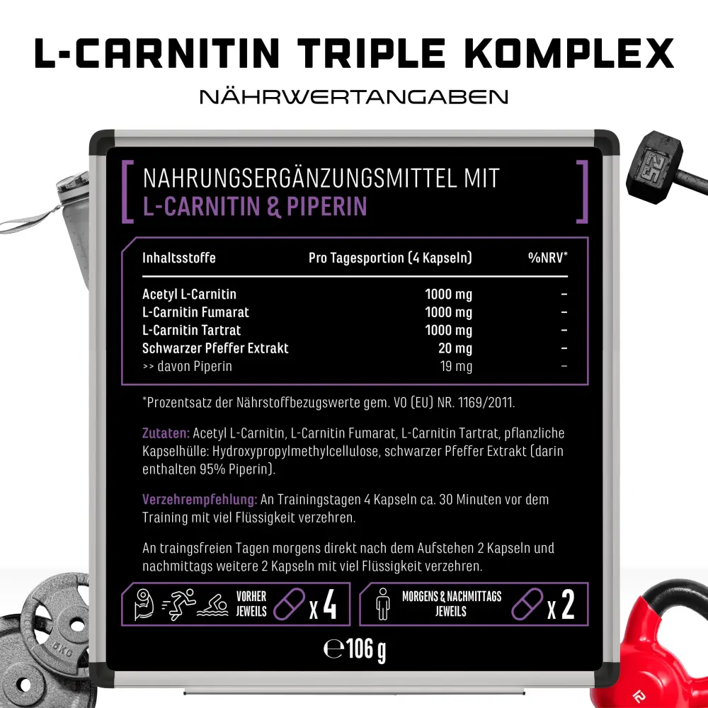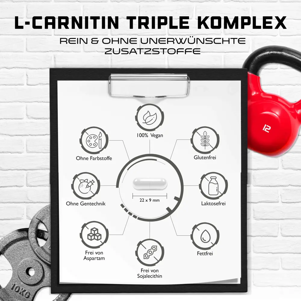 L-Carnitin Triple Complex enthält 3 der beliebtesten L-Carnitin-Verbindungen und überzeugt sowohl durch eine extrem hohe Bioverfügbarkeit und Konzentration, als auch über eine zeitversetzte Freigabe der Wirkstoffe, sodass eine optimale Versorgung gewährleistet ist.