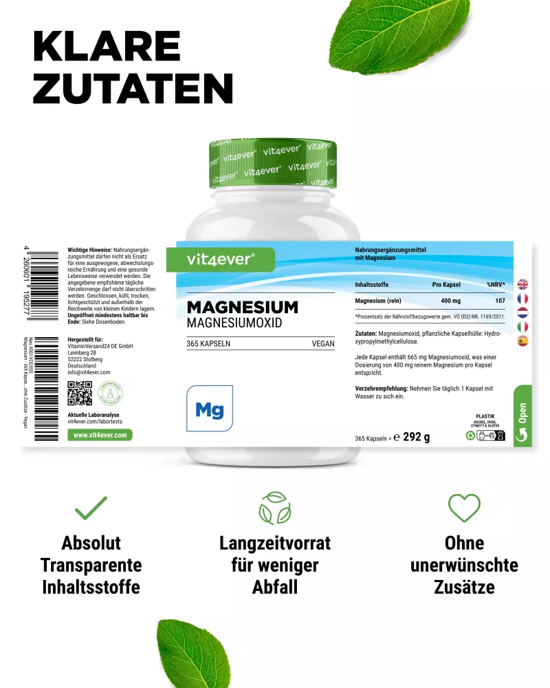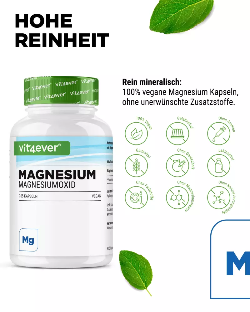 Magnesiumoxid weist hierbei die selbe hohe Bioäquivalenz und Verwertbarkeit wie Magnesiumcitrat auf, bietet aber gemäß wissenschaftlicher Studie von Shechter et al. (2012) nach mehrwöchiger Einnahme eine deutlich bessere intrazelluläre Speicherung des Magnesiums im Vergleich zu Magnesiumcitrat.