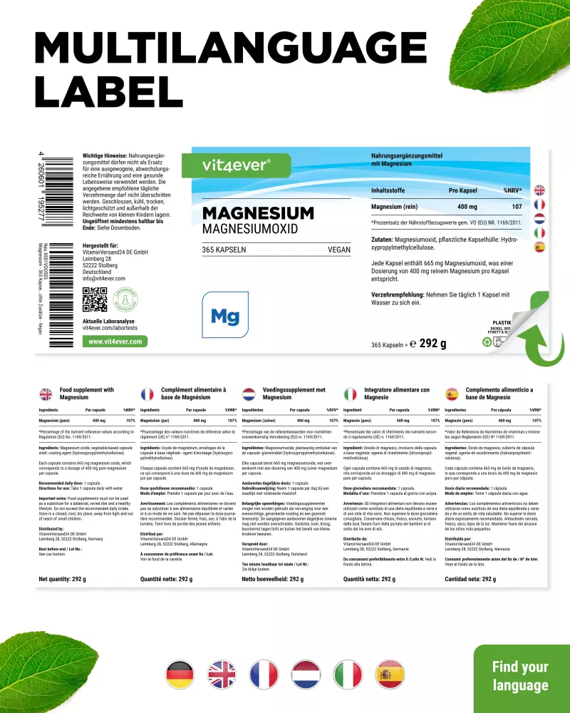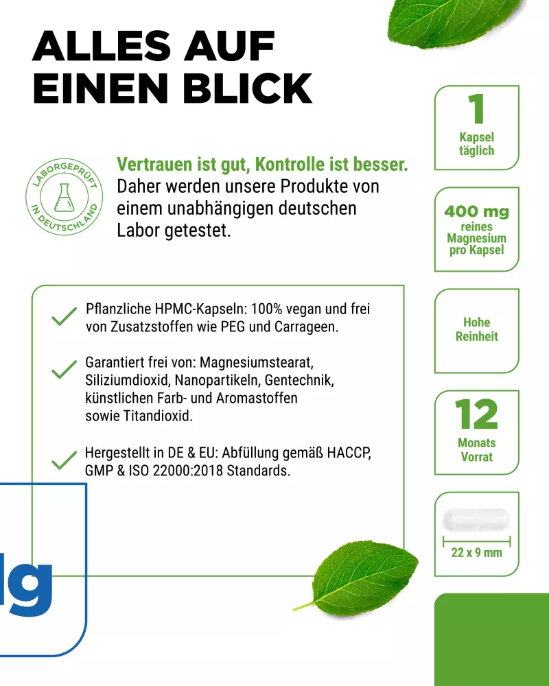 Magnesiumoxid, Überzugsmittel: Hydroxypropylmethylcellulose (pflanzliche Kapselhülle).
