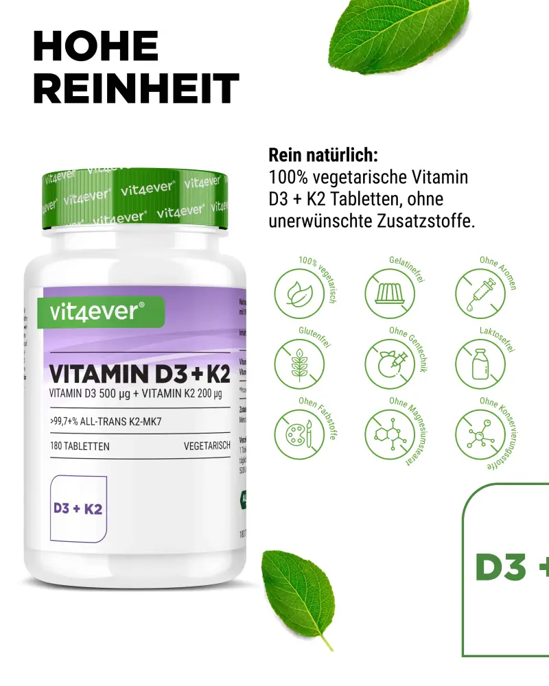 Cholecalciferol (Vitamin D3), Mikrokristalline Cellulose (Füllstoff), Menaquinon MK-7 (K2VITAL, All-trans 99+%).