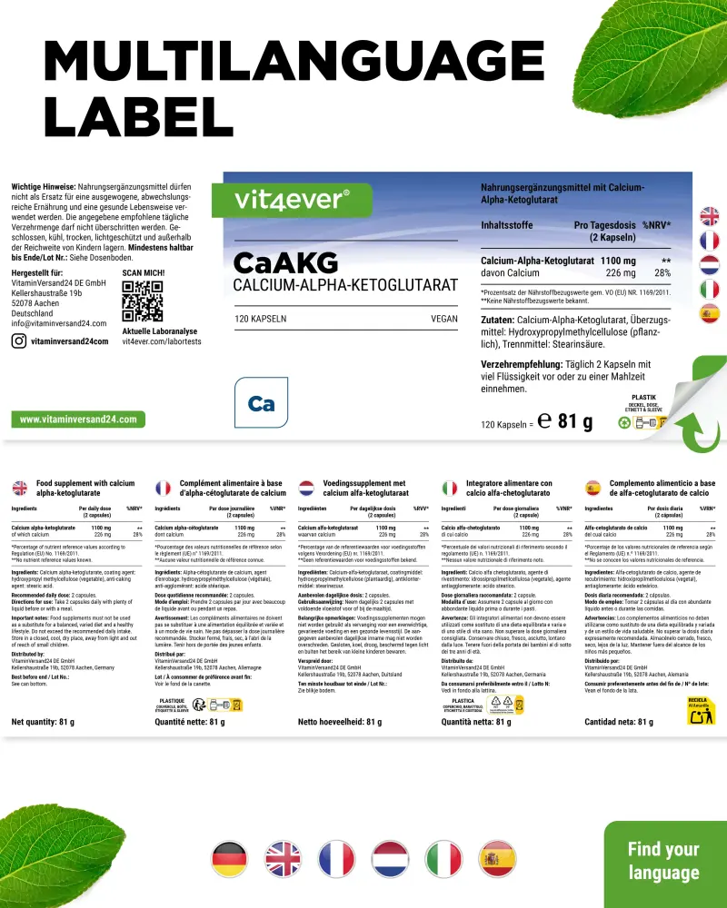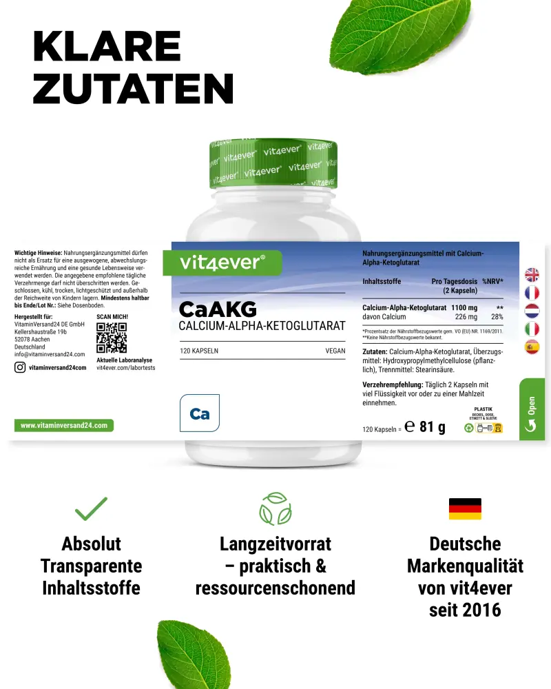 O CaAKG é um composto de cálcio e alfa-cetoglutarato.