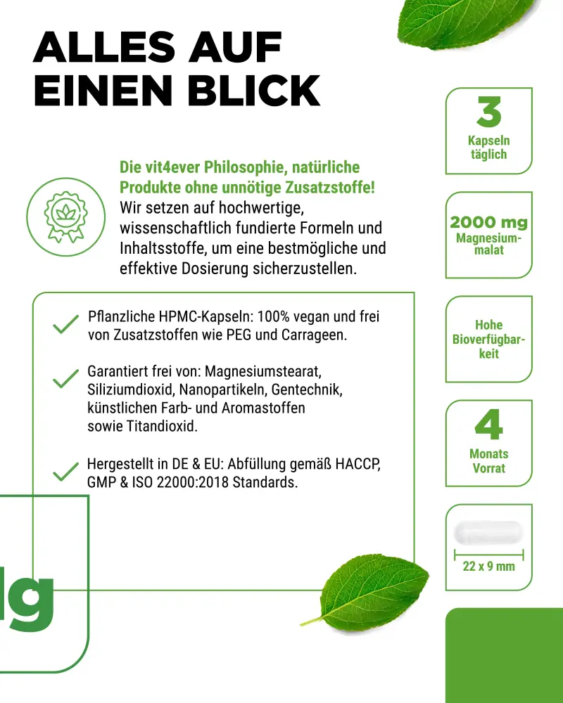 Malato de magnésio, agente de revestimento: hidroxipropilmetilcelulose (de origem vegetal).