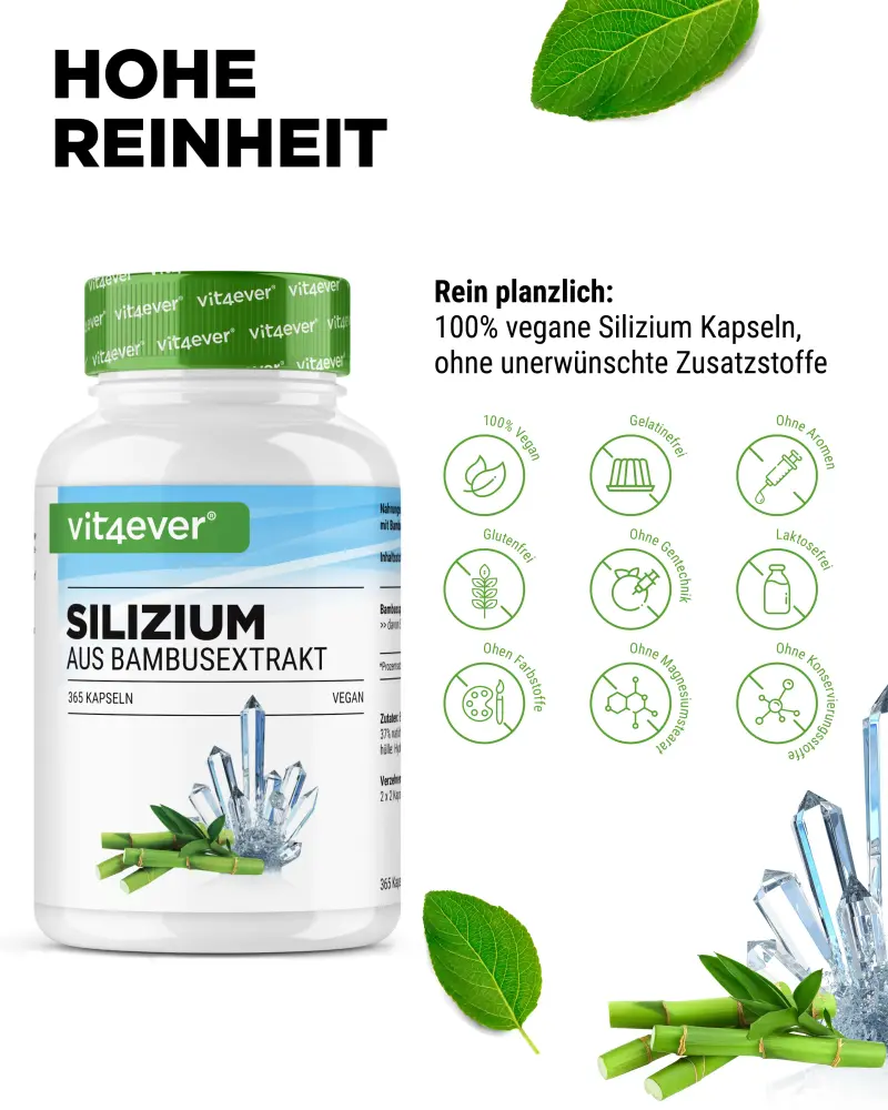 O Silício da Vit4ever fornece-lhe silício orgânico de alta qualidade proveniente de rebentos de bambu, uma fonte vegetal e, ao mesmo tempo, uma das mais ricas deste mineral.
